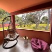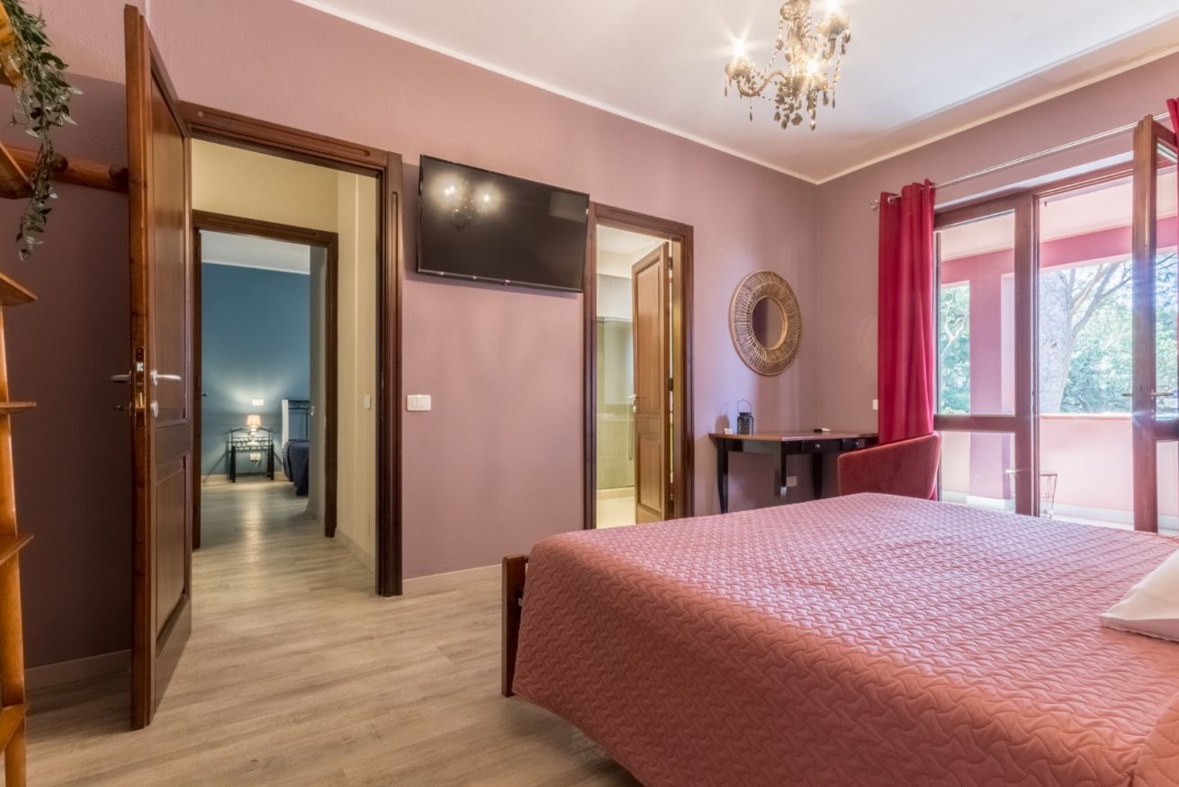 Accogliente e luminosa, questa camera è la scelta ideale per chi cerca tranquillità e contatto con la natura senza rinunciare alla comodità. Dispone di un balcone privato attrezzato con tavolo e sedie, poltrona a dondolo e puff, un bagno in suite ad uso esclusivo, moderno e ben accessoriato.